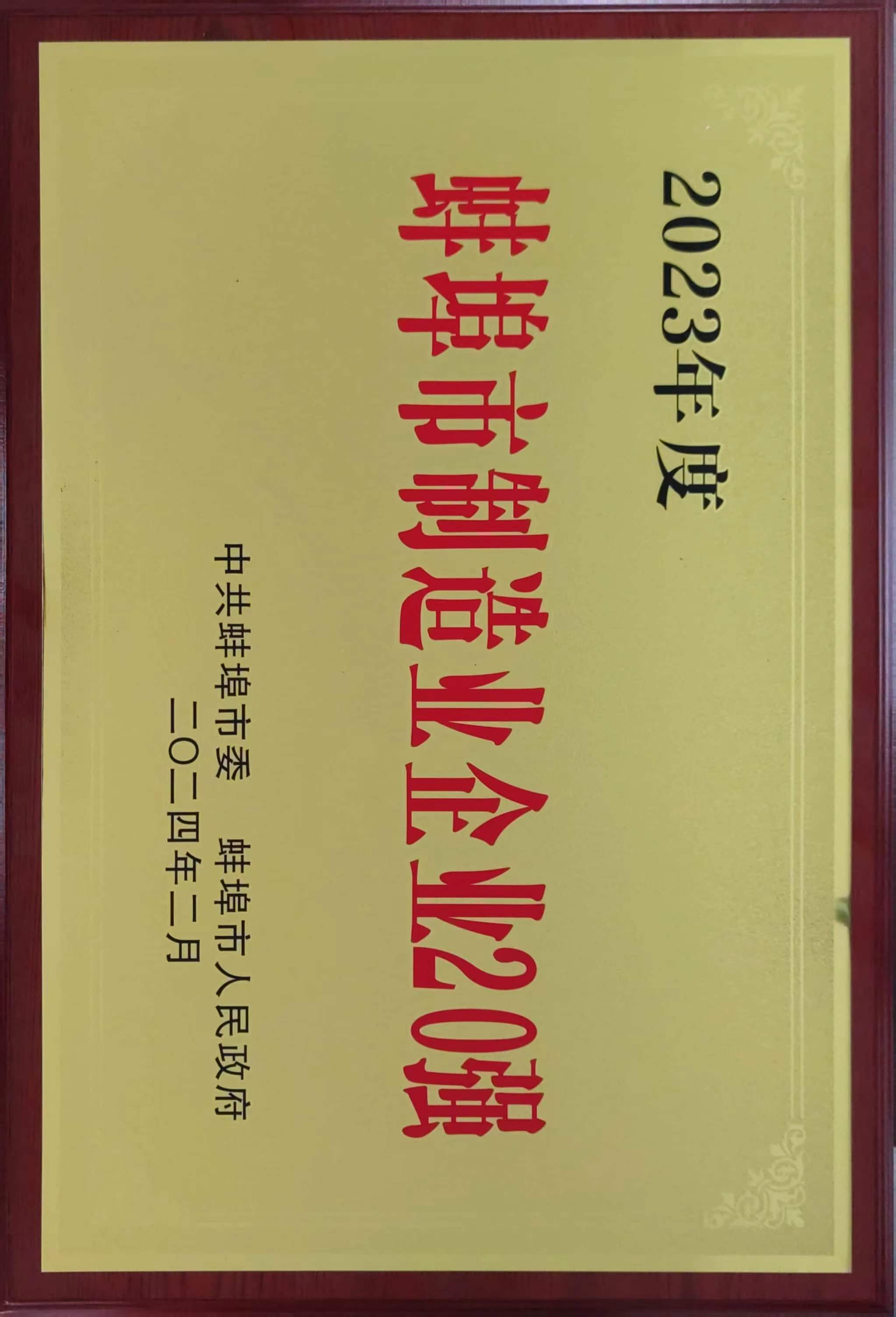 2023年度蚌埠市制造業(yè)企業(yè)20強(qiáng)